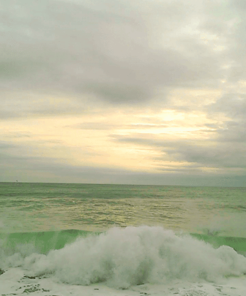 l'océan généreux offre ses eaux profondes, sa houle dense, l'éclat de ses reflets opales sous les rayons qui chantent..